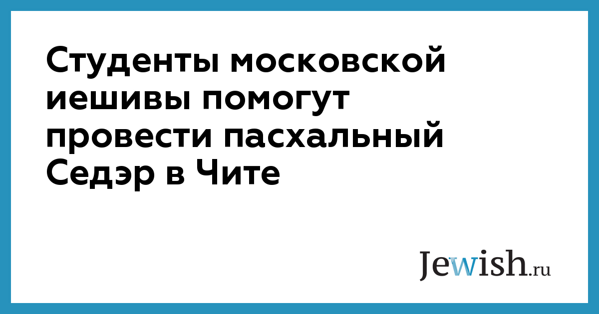 Студенты московской иешивы помогут провести пасхальный Седэр в Чите