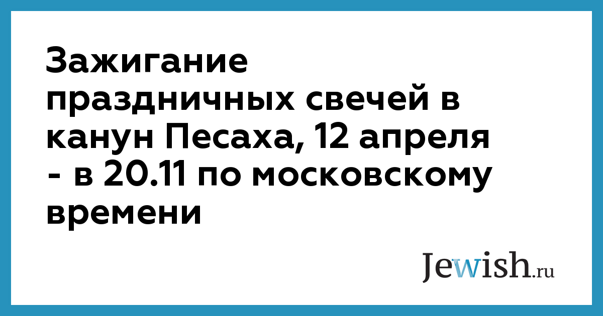 Зажигание праздничных свечей в канун Песаха, 12 апреля — в 20.11 по московскому времени