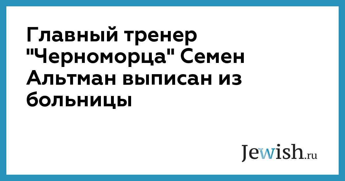 Главный тренер "Черноморца" Семен Альтман выписан из больницы