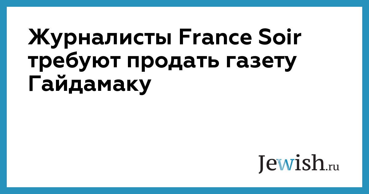 Журналисты французской газеты France Soir распространили спецномер издания, в котором потребовали отменить решение арбитражного суда, отклонившего заявку российского предпринимателя Аркадия Гайдамака на покупку газеты, сообщает Le Monde.