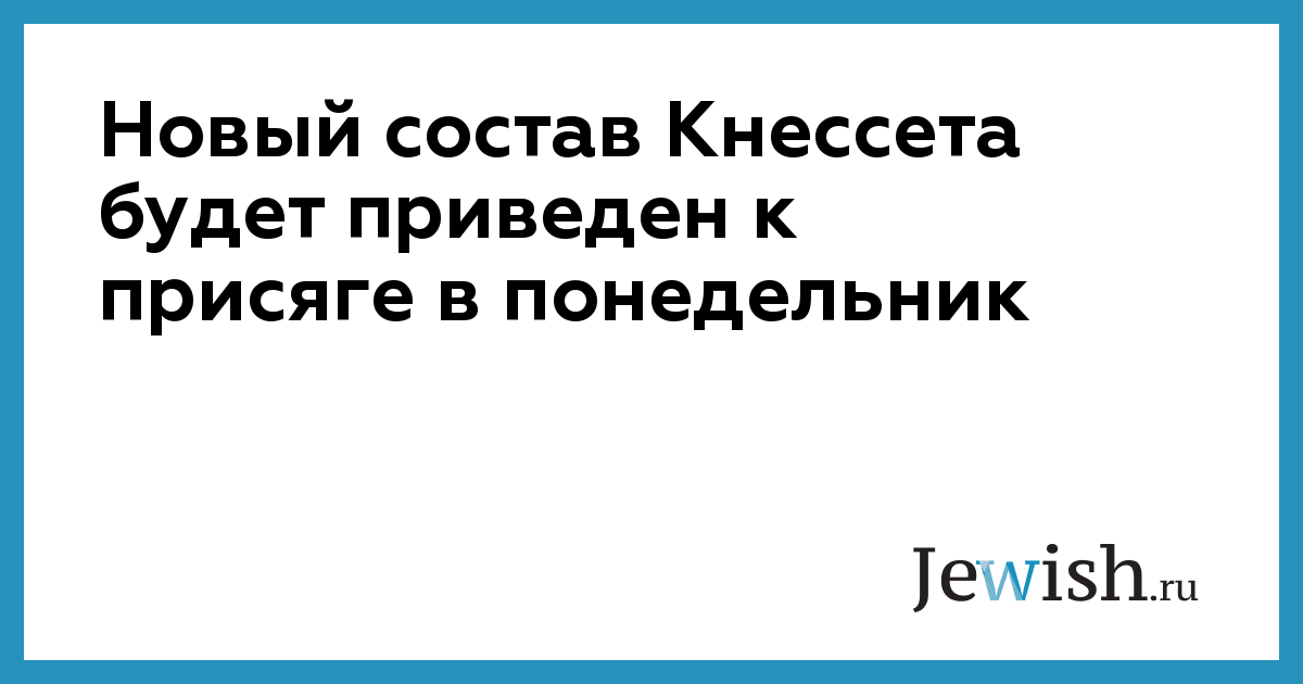 Новый состав израильского Кнессета соберется в понедельник на инаугурационное заседание, в ходе которого состоится торжественная церемония приведения к присяге депутатов Кнессета.