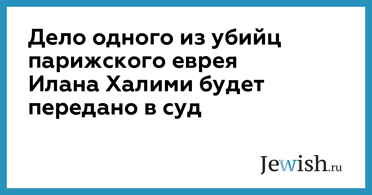 Дело одного из убийц парижского еврея Илана Халими будет передано в суд