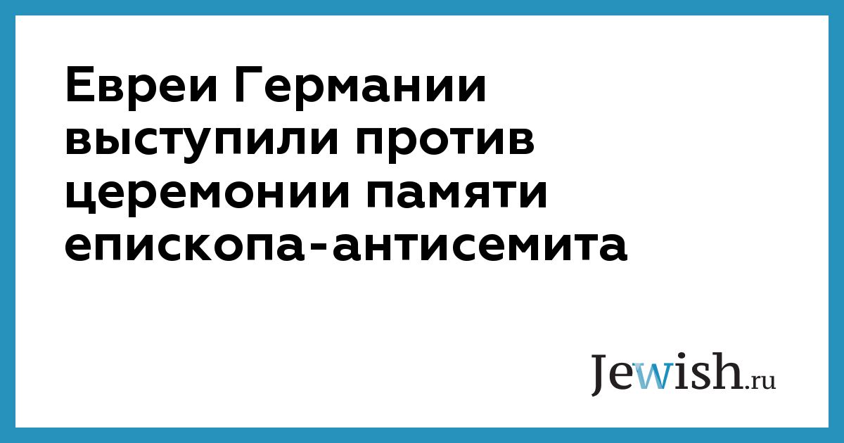 Евреи Германии выступили против церемонии памяти епископа-антисемита