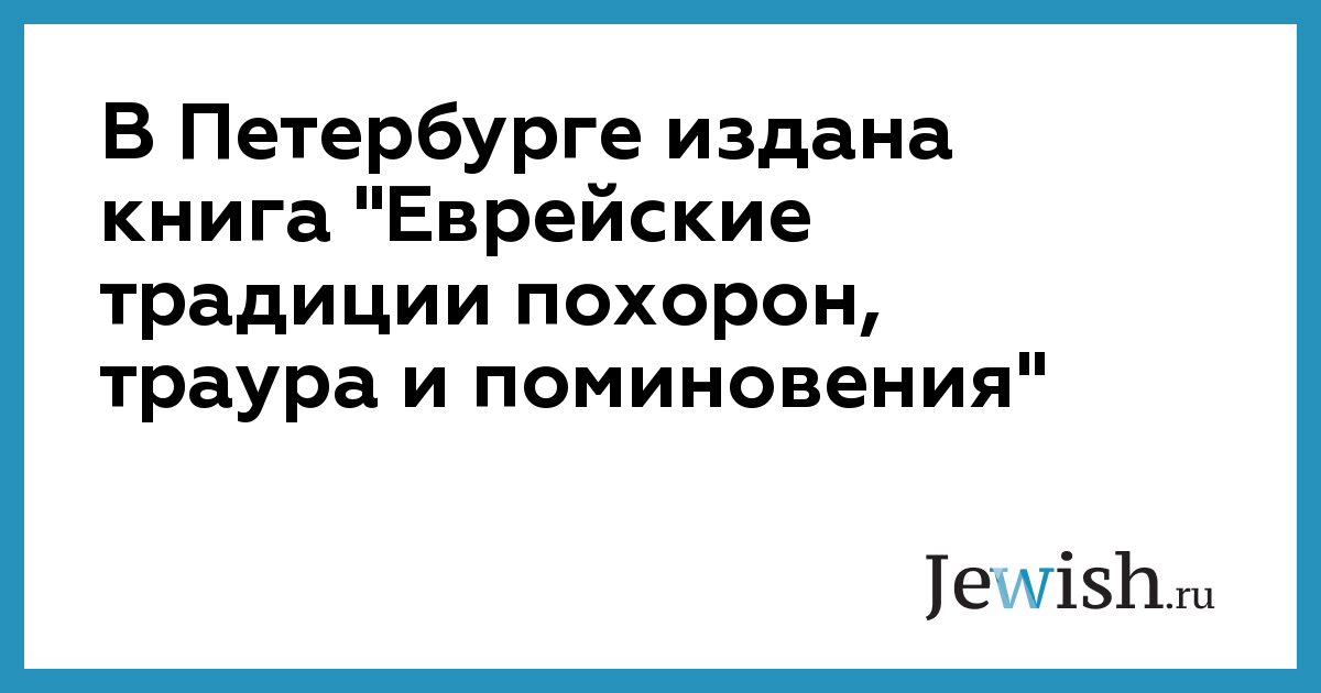 В Петербурге издана книга "Еврейские традиции похорон, траура и поминовения"