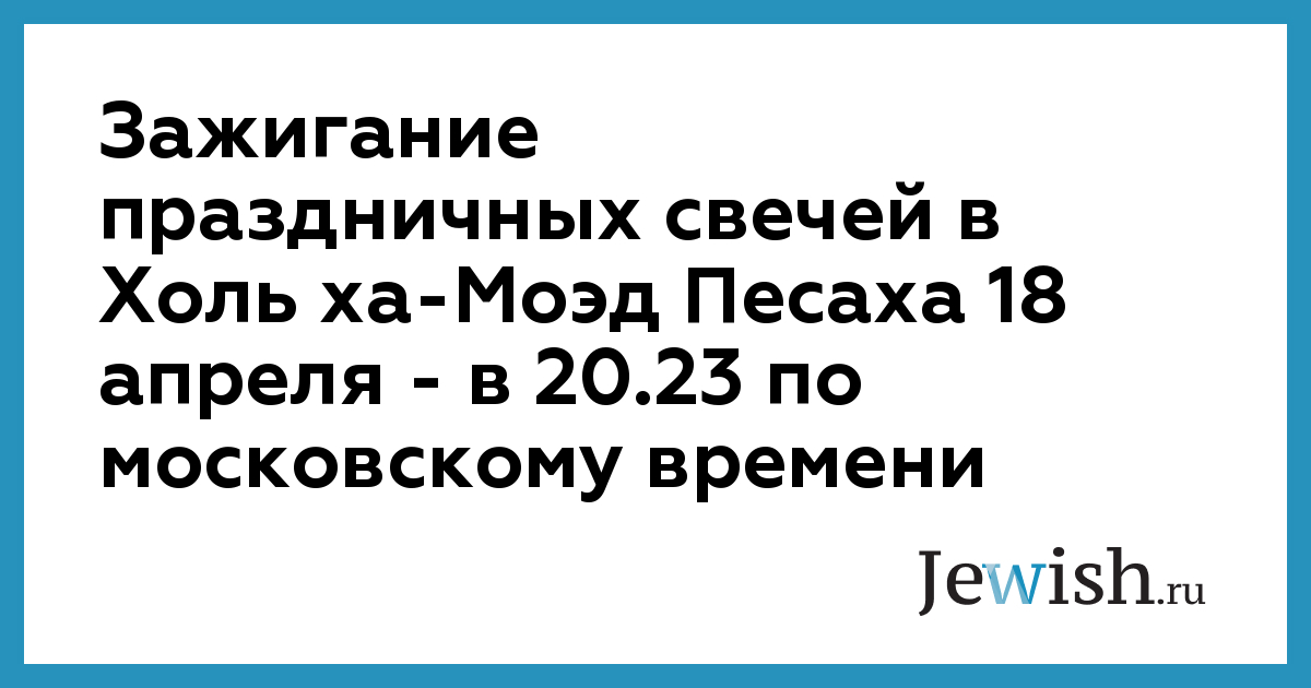 Зажигание праздничных свечей в Холь ха-Моэд Песаха 18 апреля — в 20.23 по московскому времени