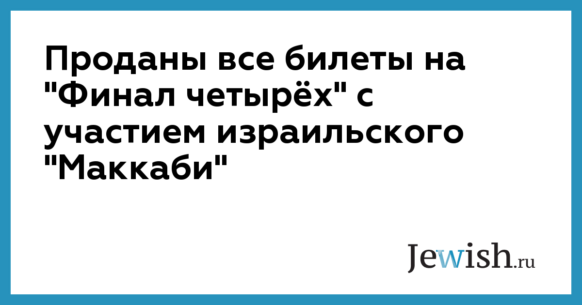 Проданы все билеты на "Финал четырёх" с участием израильского "Маккаби"