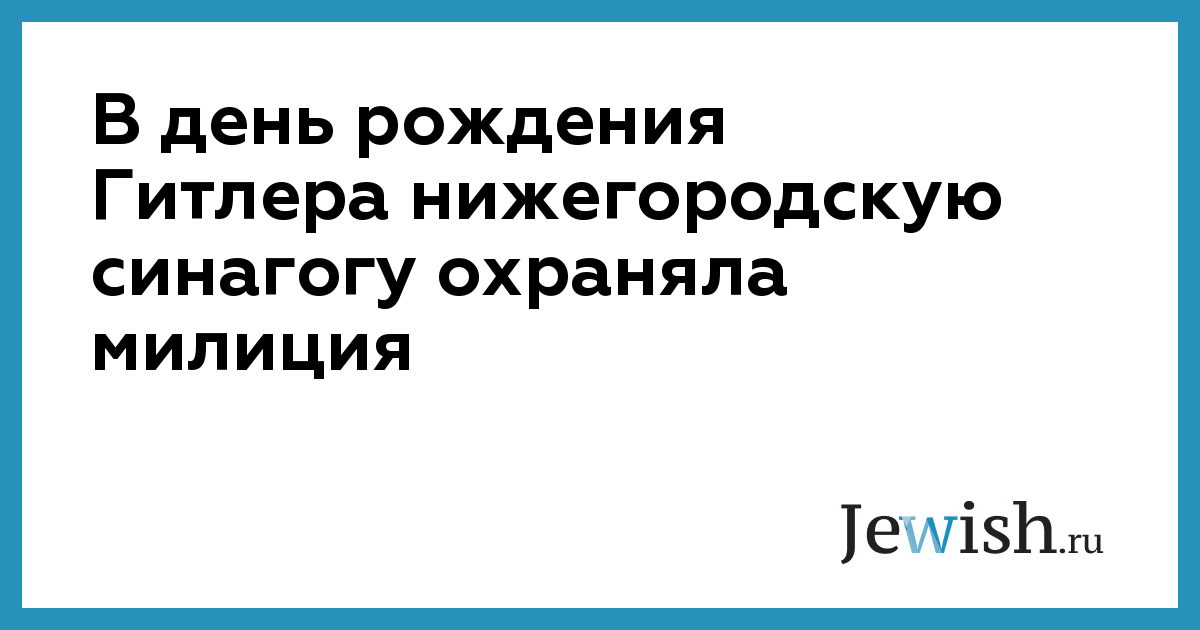 В день рождения Гитлера нижегородскую синагогу охраняла милиция