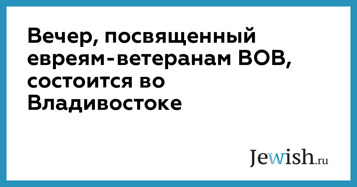 Вечер, посвященный евреям-ветеранам ВОВ, состоится во Владивостоке