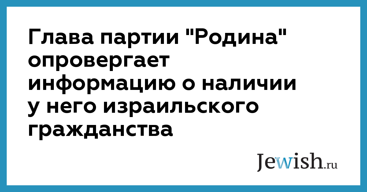 Глава партии "Родина" опровергает информацию о наличии у него израильского гражданства