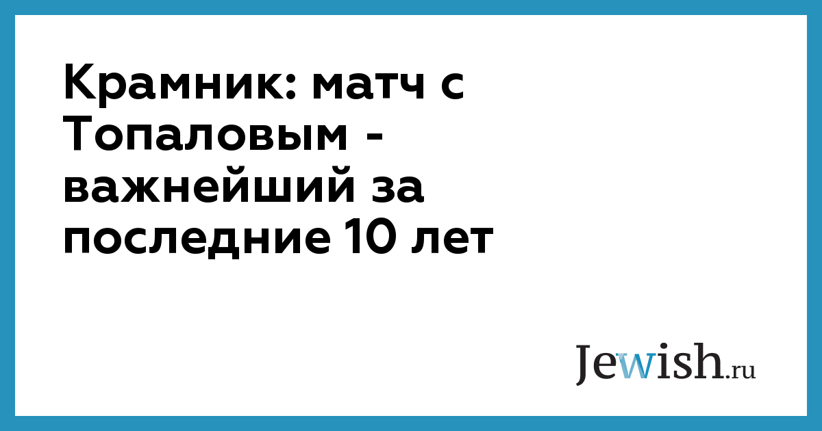 Крамник: матч с Топаловым — важнейший за последние 10 лет