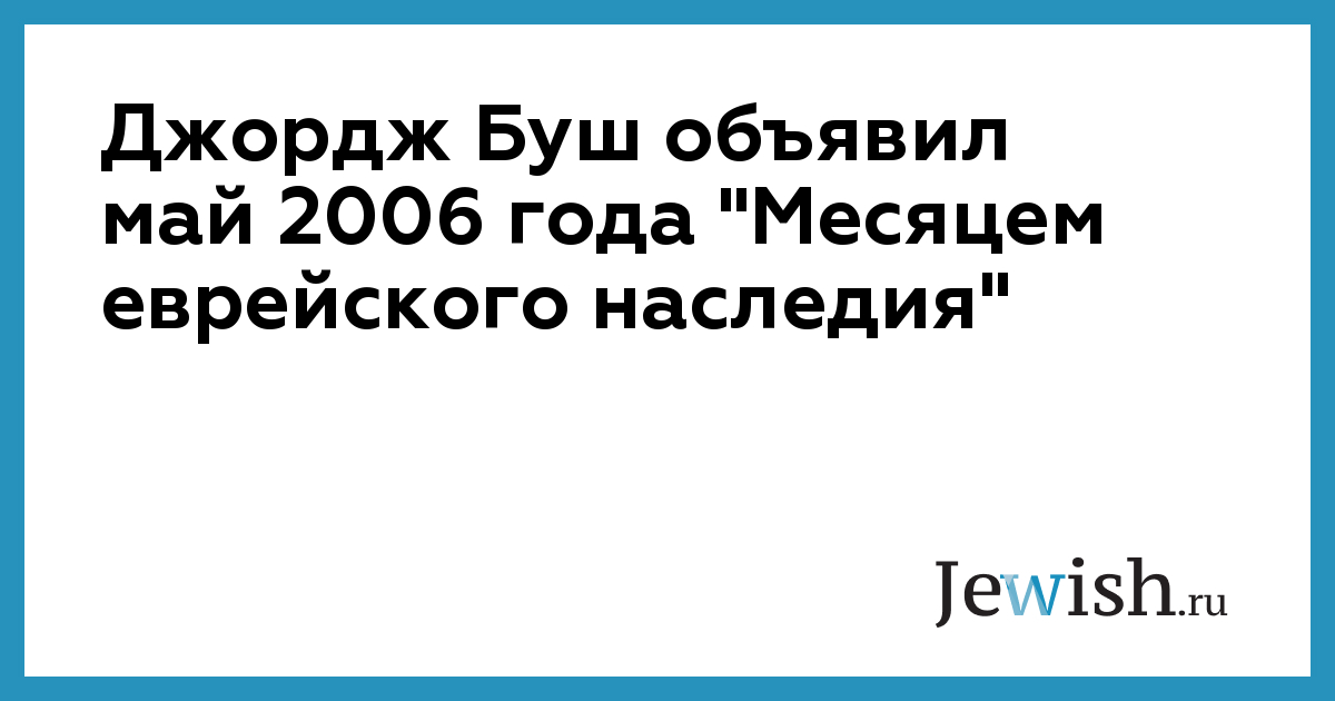 Президент США Джордж Буш объявил май 2006 года "Месяцем еврейского наследия", отметив вклад еврейского народа в развитие и процветание Соединенных Штатов Америки.