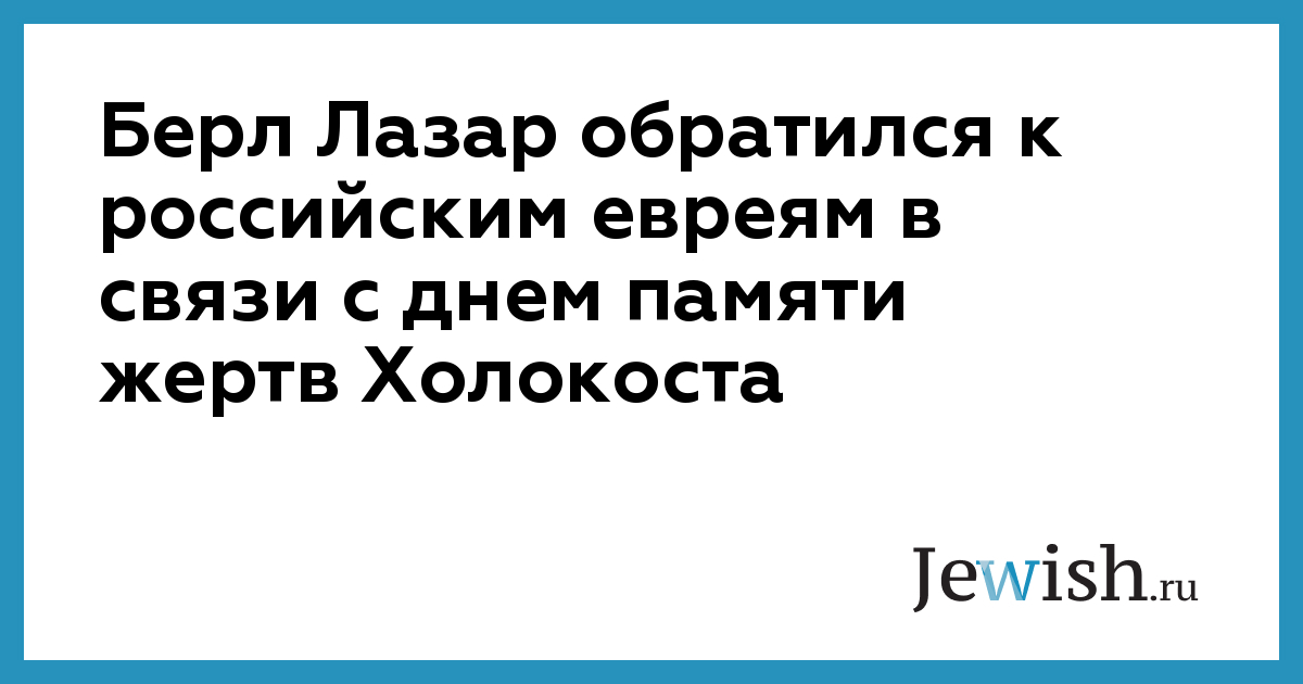 Берл Лазар обратился к российским евреям в связи с днем памяти жертв Холокоста