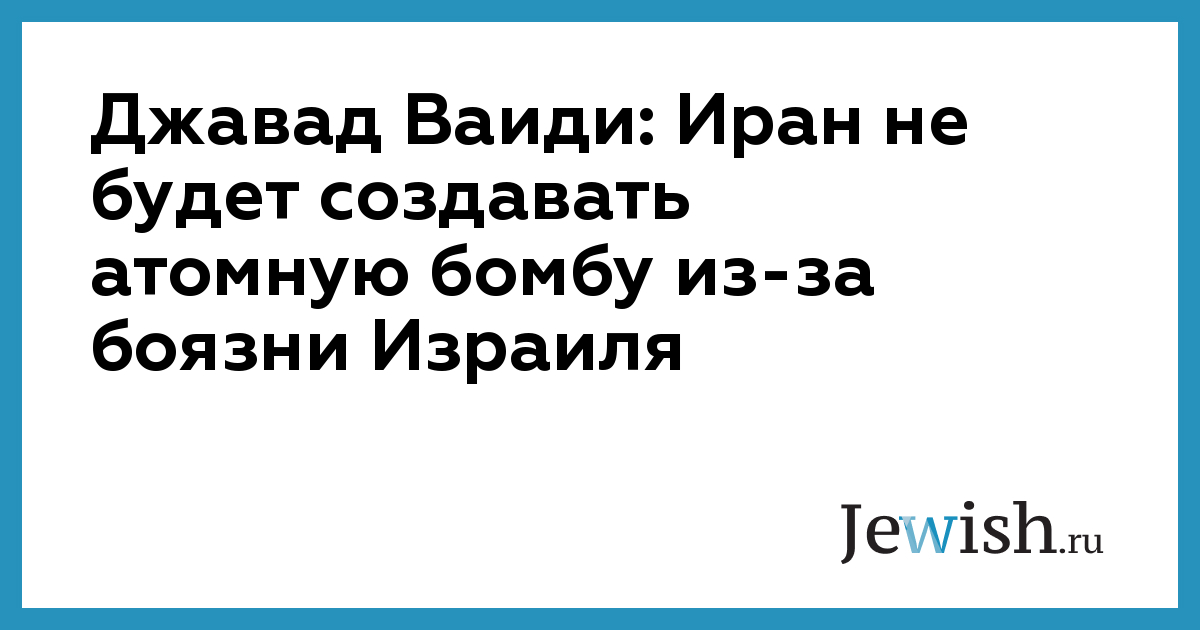 Джавад Ваиди: Иран не будет создавать атомную бомбу из-за боязни Израиля