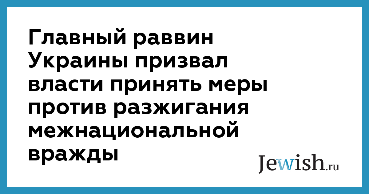 Главный раввин Украины призвал власти принять меры против разжигания межнациональной вражды
