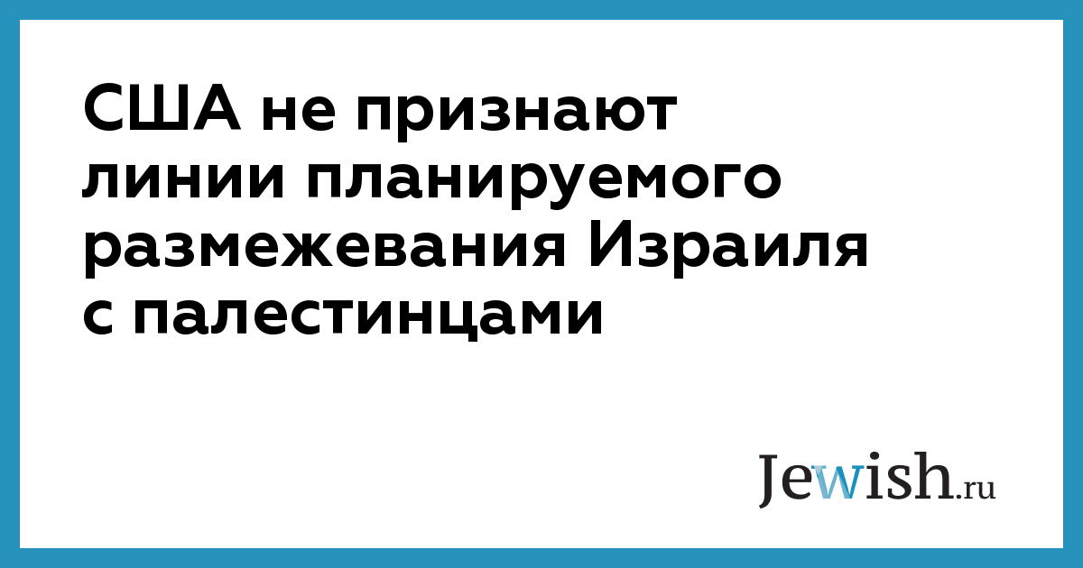 США не признают линии планируемого размежевания Израиля с палестинцами