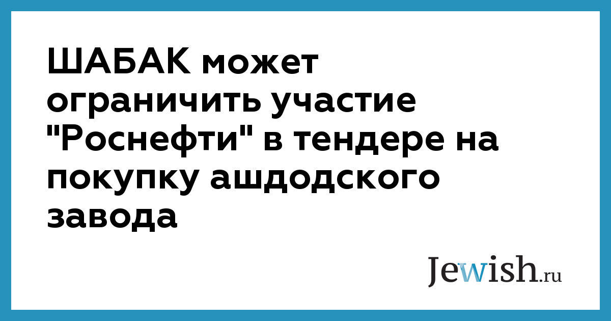 ШАБАК может ограничить участие "Роснефти" в тендере на покупку ашдодского завода
