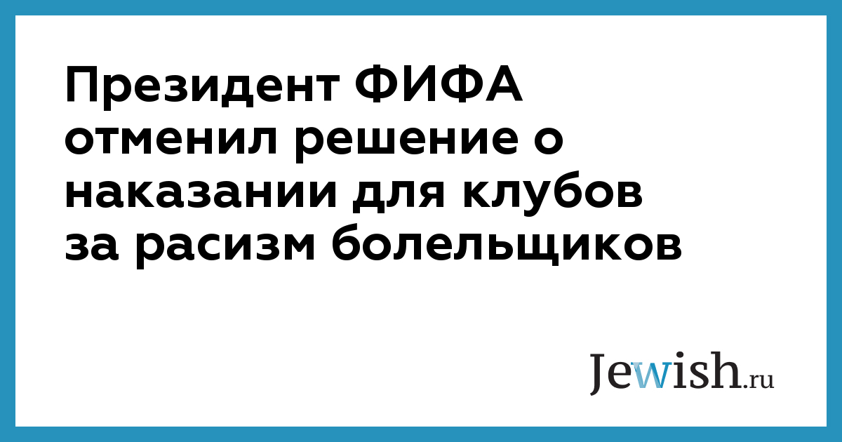 Президент ФИФА отменил решение о наказании для клубов за расизм болельщиков