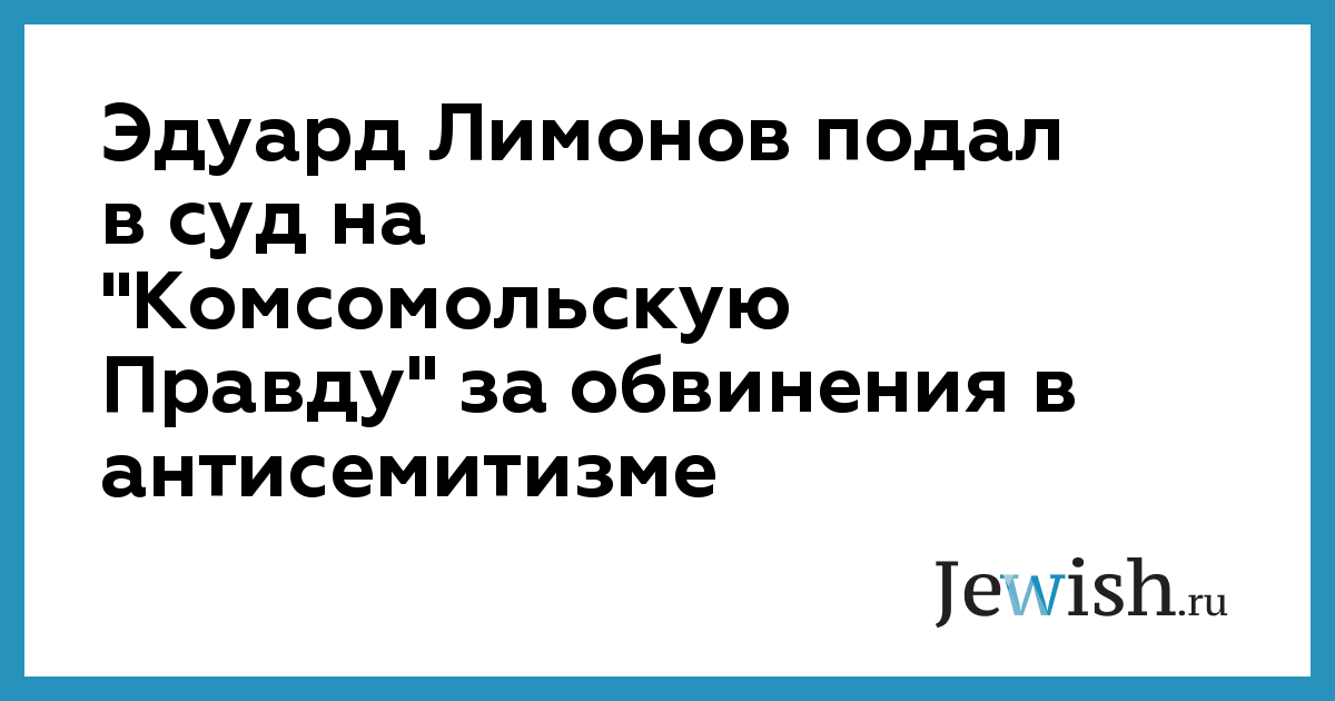 Эдуард Лимонов подал в суд на "Комсомольскую Правду" за обвинения в антисемитизме
