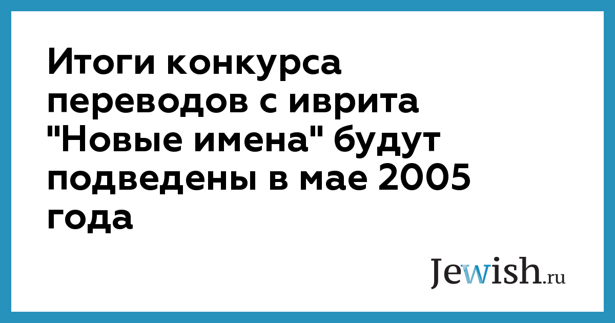 Подведение итогов Конкурса литературных переводов с иврита на русский язык "Новые имена" и вручение призов состоится в мае 2006 года в ходе недели Израиля в Москве. Прием переводов на конкурс закончился 25 апреля.