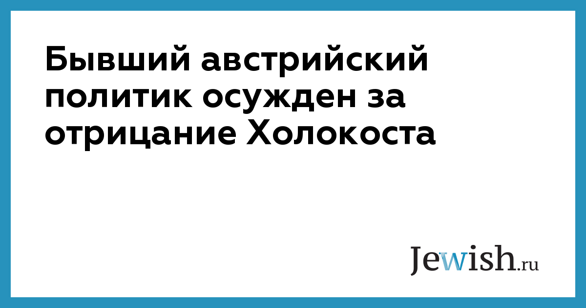 Вчера бывший функционер "Австрийской партии свободы" отказался признать себя виновным в нарушении закона, запрещающего отрицание факта нацистского геноцида еврейского народа в любых проявлениях. Его адвокат Фарид Рифаат заявил в суде, что его подзащитный "никогда не отрицал существование газовых камер, а лишь призывал к серьезному изучению этого вопроса".