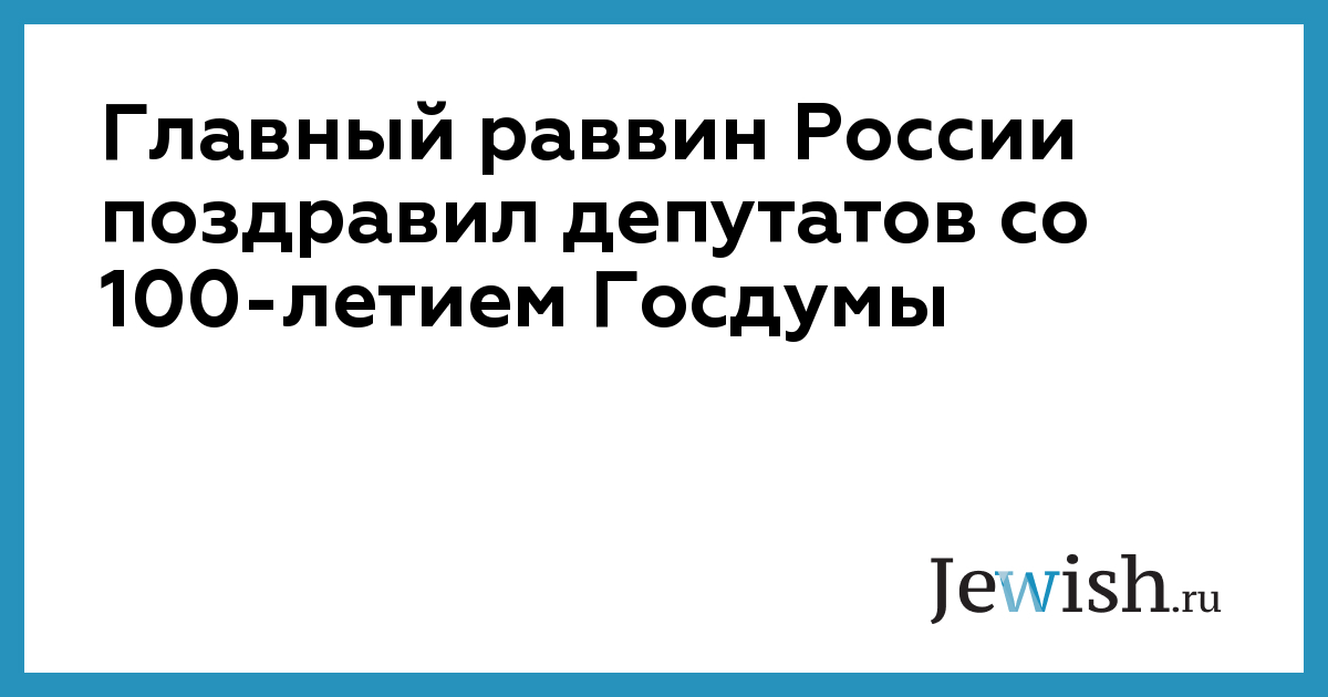 Главный раввин России поздравил депутатов со 100-летием Госдумы