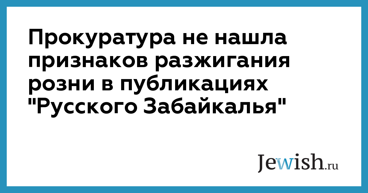 В публикациях газеты «Русское Забайкалье», сообщили в прокуратуре, не было обнаружено также лексики, оскорбляющей честь и достоинство лиц по национальной и религиозной принадлежности, либо обосновывающей превосходство одной национальности или расы над другой.