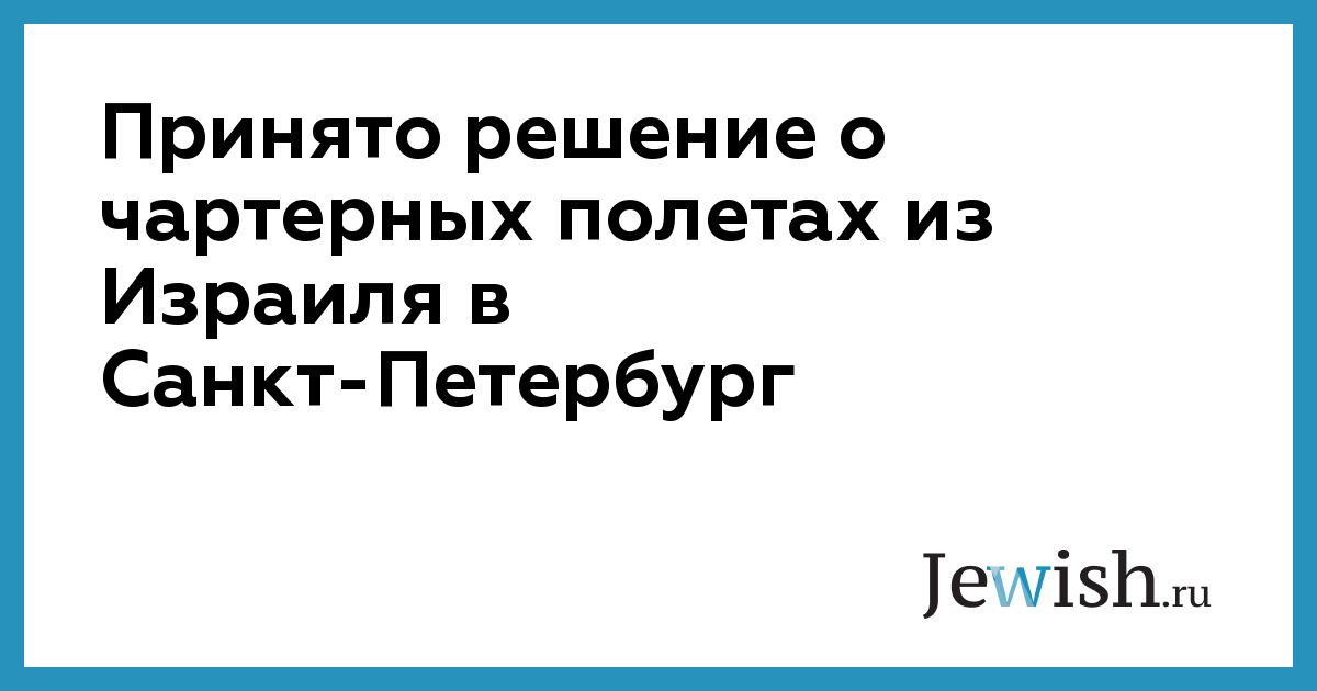 Принято решение о чартерных полетах из Израиля в Санкт-Петербург