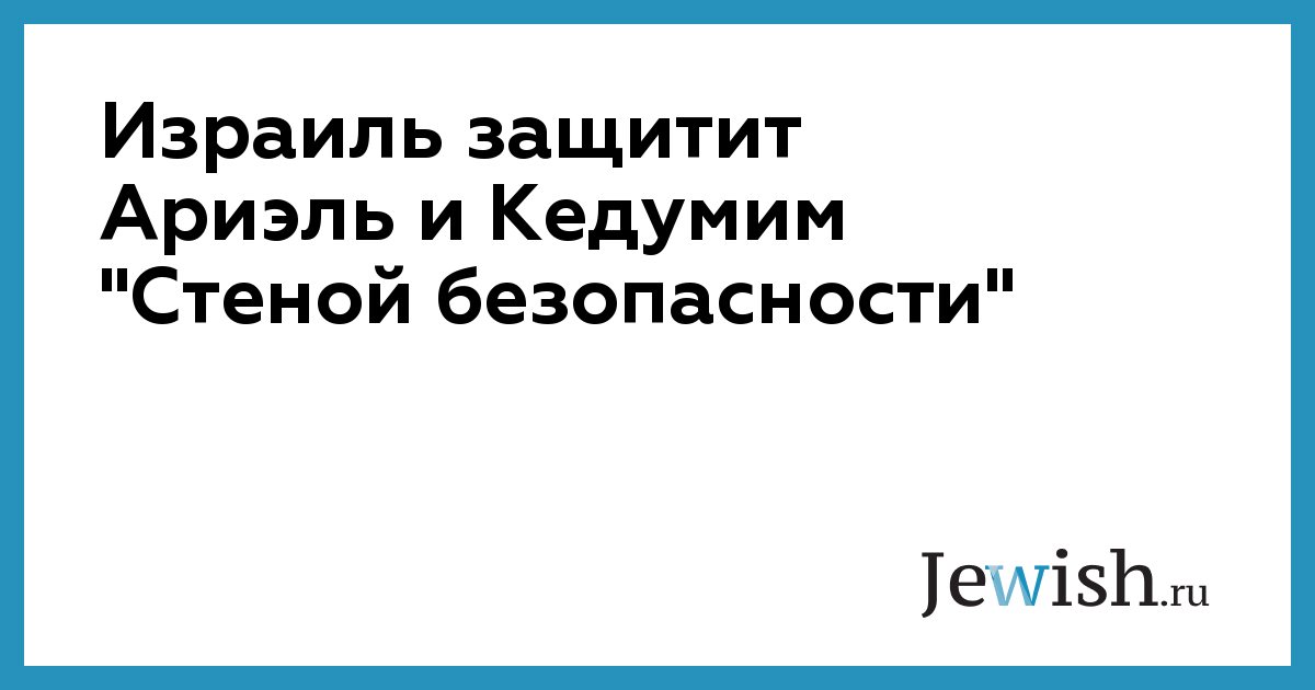 Израиль защитит Ариэль и Кедумим "Стеной безопасности"