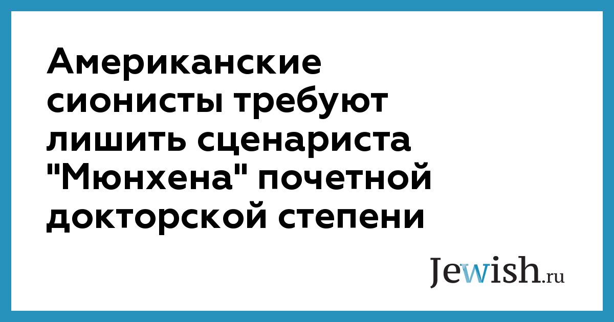 Американские сионисты требуют лишить сценариста "Мюнхена" почетной докторской степени