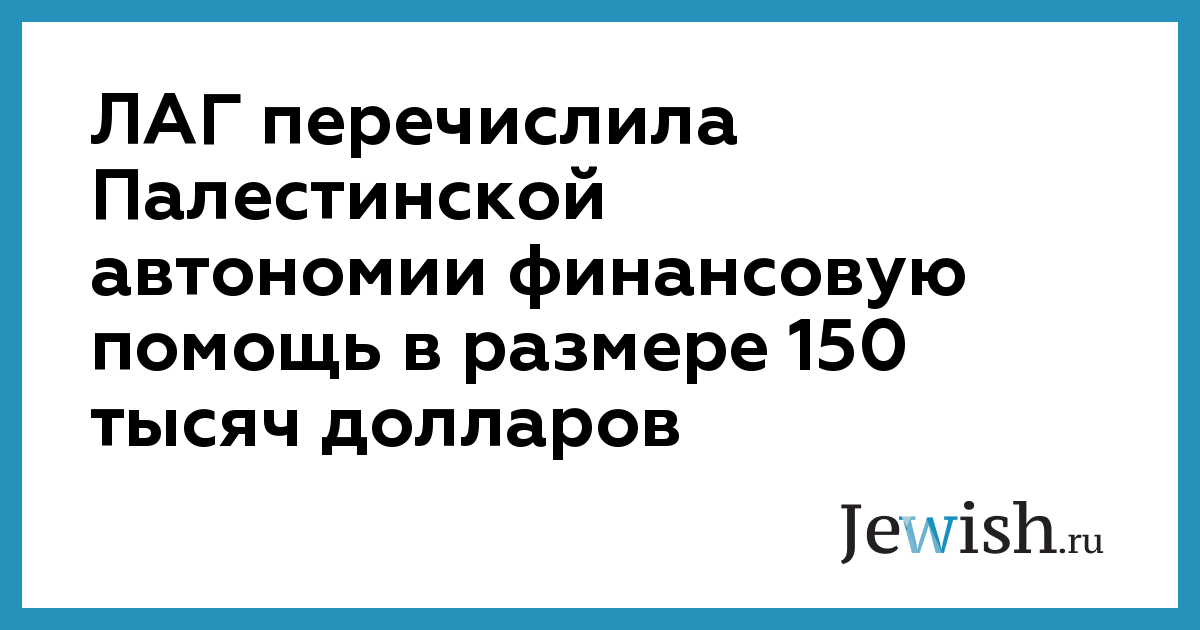 Лига арабских государств (ЛАГ) в воскресенье перечислила 150 тысяч долларов финансовой помощи правительству Палестинской автономии, сообщает Associated Press.