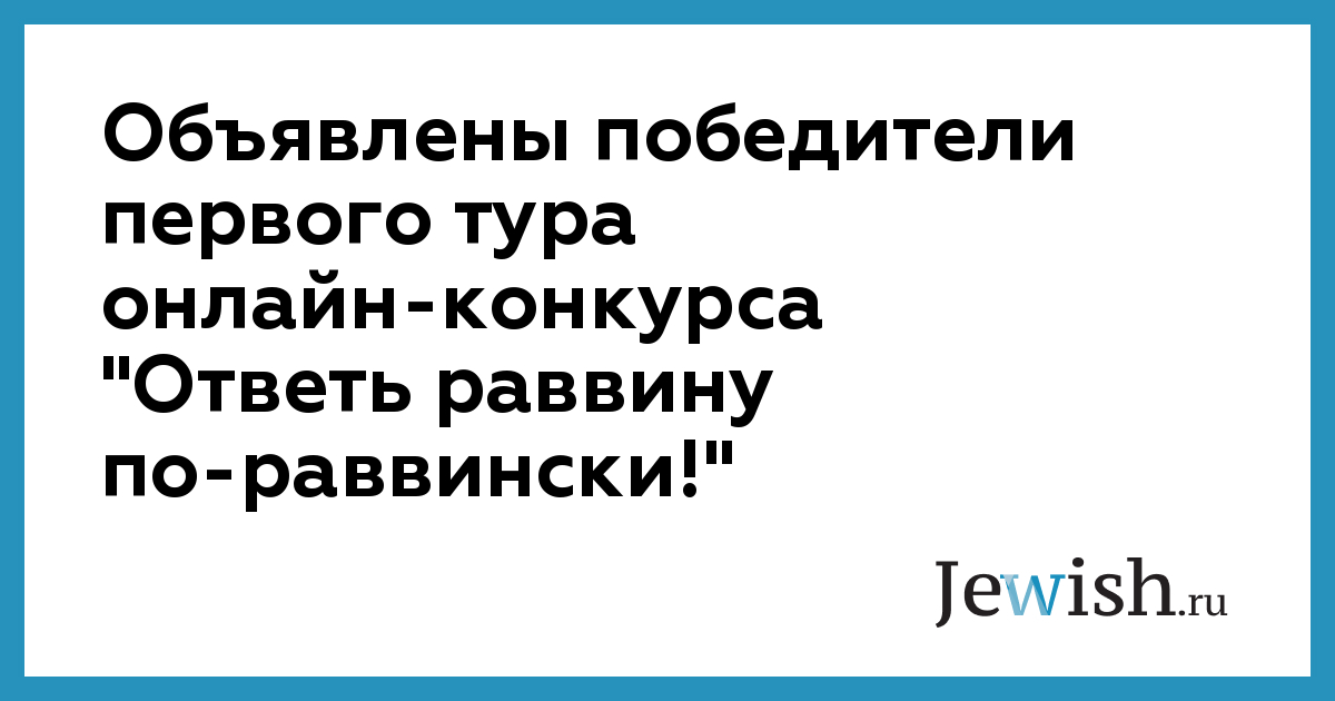 Завершился первый тур конкурса "Ответь раввину по-раввински!", который проводит виртуальное сообщество раввинов Rabbi.ru - проект глобального еврейского онлайн-центра Jewish.ru. Победители этого тура получат в качестве приза книгу Арье Бен-Эфраима "Справочник по иудаизму". Спонсорами проекта являются рэб Мордехай и Йохевед Штерн (Реховот, Израиль).