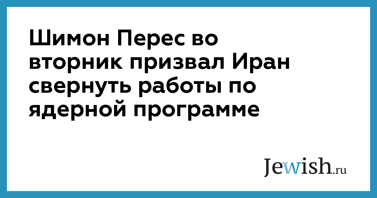 Шимон Перес во вторник призвал Иран свернуть работы по ядерной программе