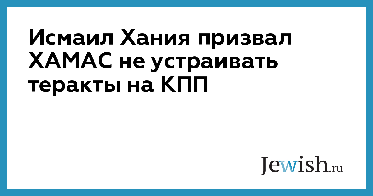 Премьер-министр палестинской автономии Исмаил Хания впервые обратился во вторник к боевикам ХАМАСа и призвал их не устраивать теракты на КПП, поскольку это препятствует получению гуманитарной помощи, так необходимой населению сектора Газы.
