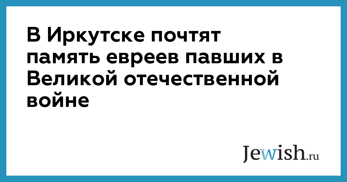 В Иркутске почтят память евреев павших в Великой отечественной войне