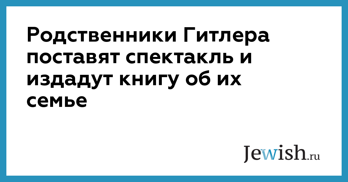 Родственники Гитлера поставят спектакль и издадут книгу об их семье