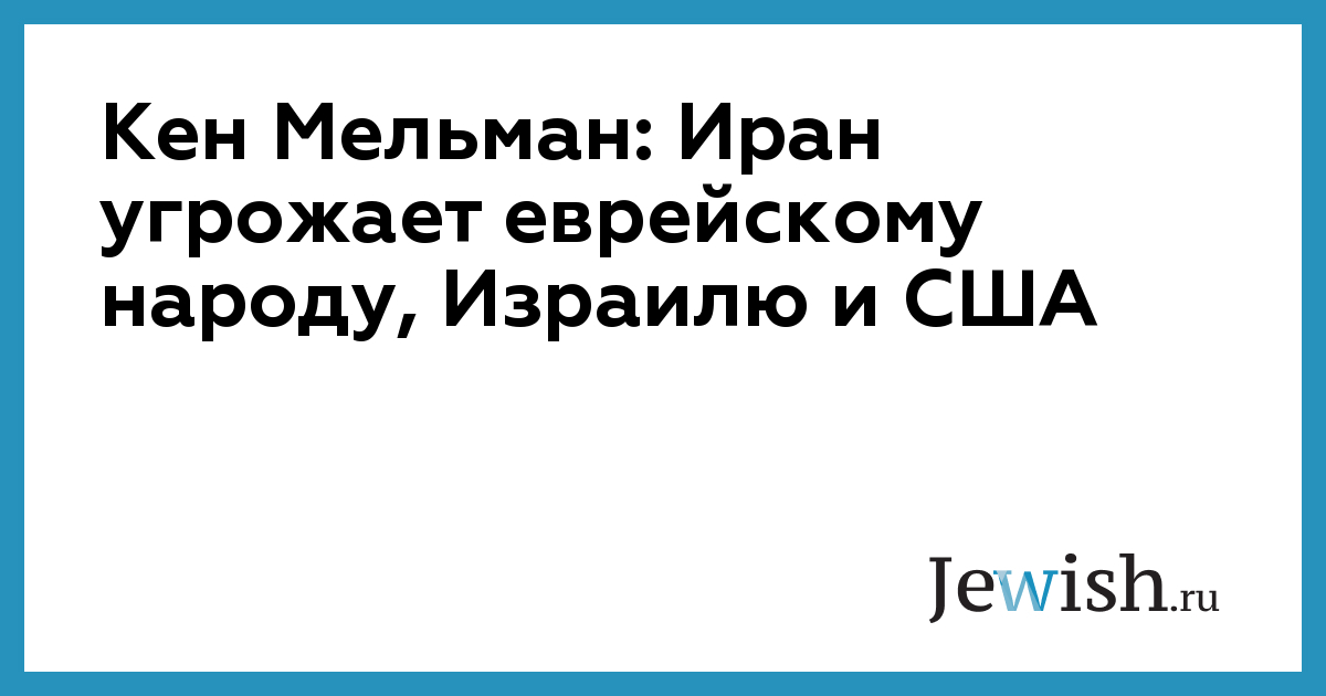 Кен Мельман: Иран угрожает еврейскому народу, Израилю и США