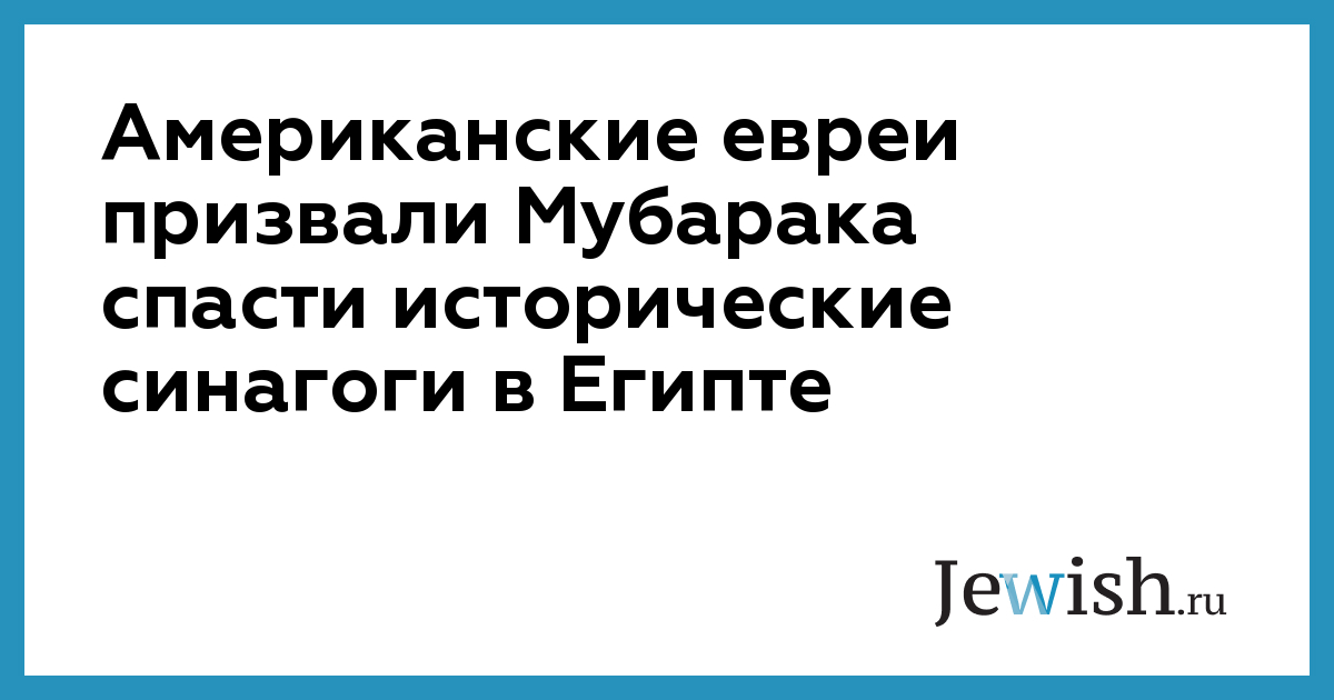Американские евреи призвали Мубарака спасти исторические синагоги в Египте