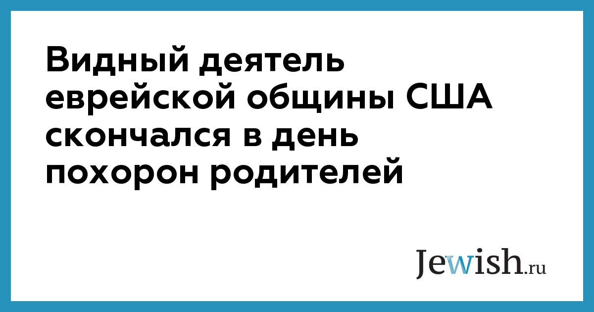 Видный деятель еврейской общины США скончался в день похорон родителей
