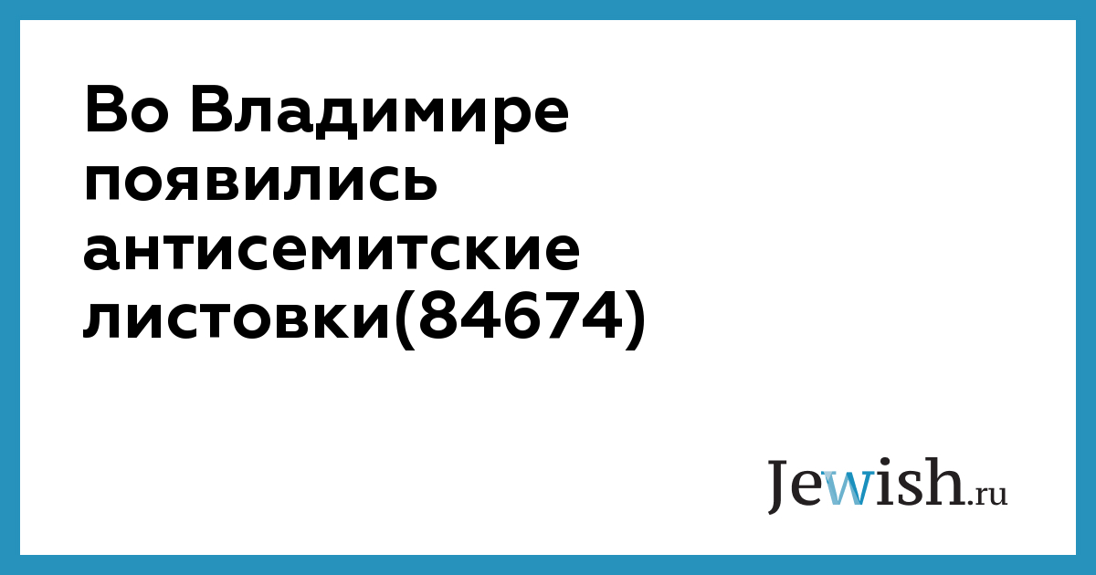 Владимирская прокуратура занимается проверкой факта появления в городе листовок антисемитского содержания, передает ГТРК "Владимир". Прокуратуре областного центра дано поручение провести экспертизу на предмет наличия признаков преступления, предусмотренного 282-й статьей Уголовного кодекса — "Возбуждение ненависти, вражды и унижение человеческого достоинства".