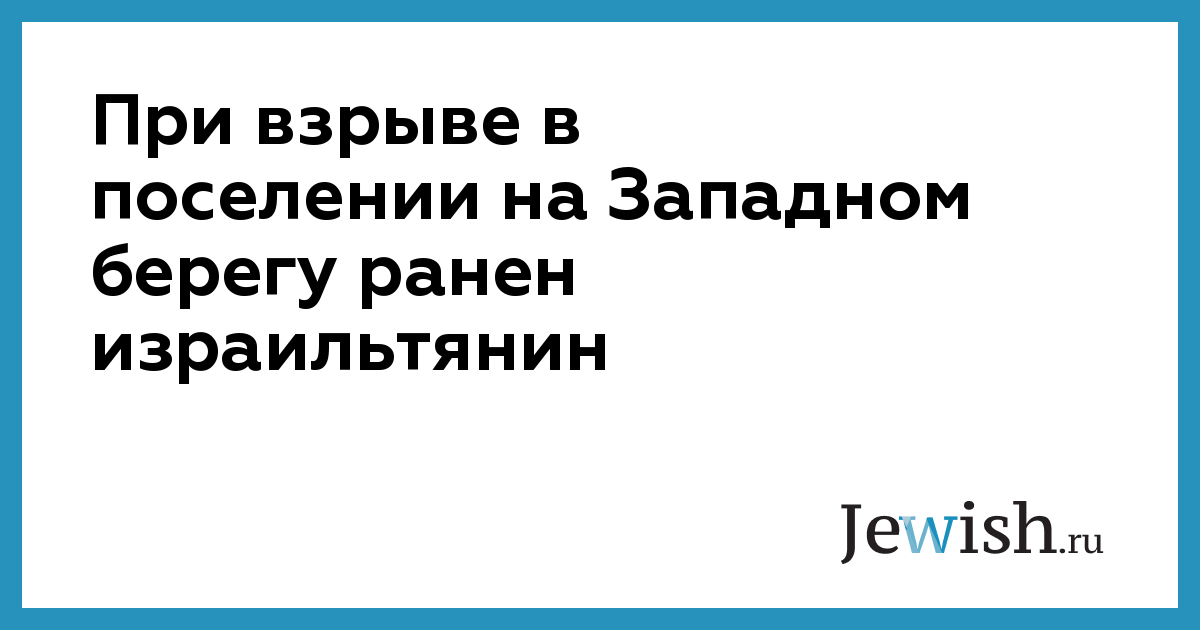При взрыве в поселении на Западном берегу ранен израильтянин