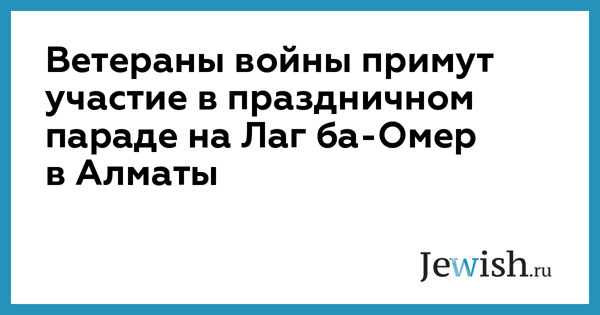 Еврейская община Алма-Аты 16 мая устроит в честь ветеранов Великой Отечественной войны парад, приуроченный к 61-ой годовщине Победы и иудейскому празднику "Лаг ба — Омер", сообщает ИА REGNUM.