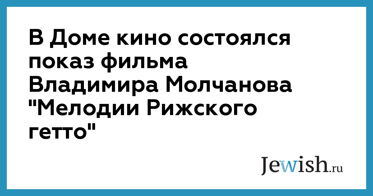 В Доме кино состоялась премьера нового документального фильма телеведущего Владимира Молчанова "Мелодии Рижского гетто", в котором рассказывается о трагедии латвийских евреев в годы нацистской оккупации, пишет газета "Известия".
