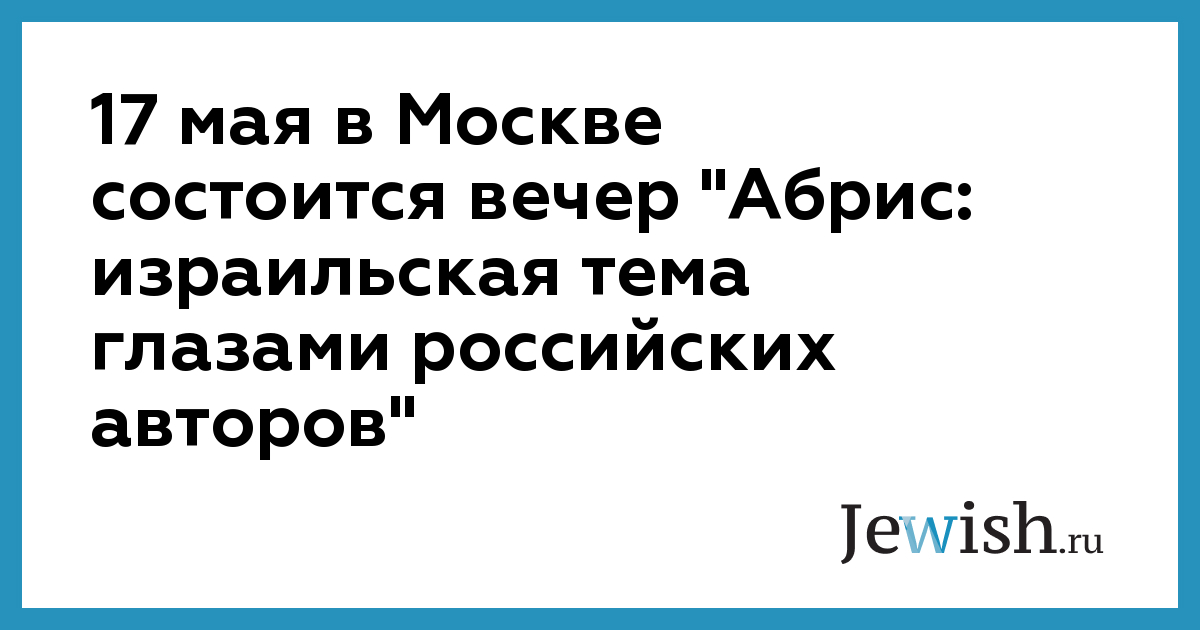 17 мая в Москве состоится вечер "Абрис: израильская тема глазами российских авторов"