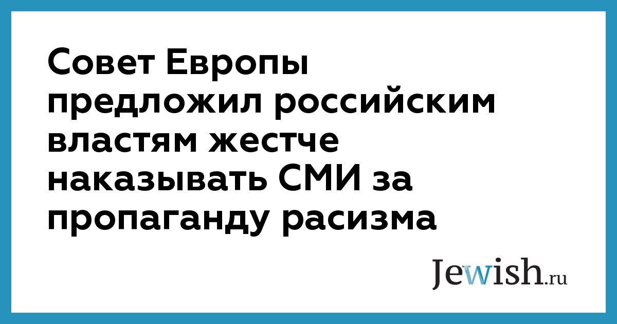 Совет Европы предложил российским властям жестче наказывать СМИ за пропаганду расизма