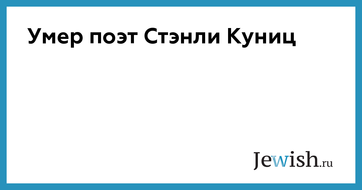 Американский поэт и журналист, лауреат Пулитцеровской премии Стэнли Куниц скончался в возрасте 99 лет, не дожив два месяца до своего 100-летия, передает ВВС. Как сообщил издатель Куница, он скончался во сне в своем доме на Манхэттене в результате пневмонии.