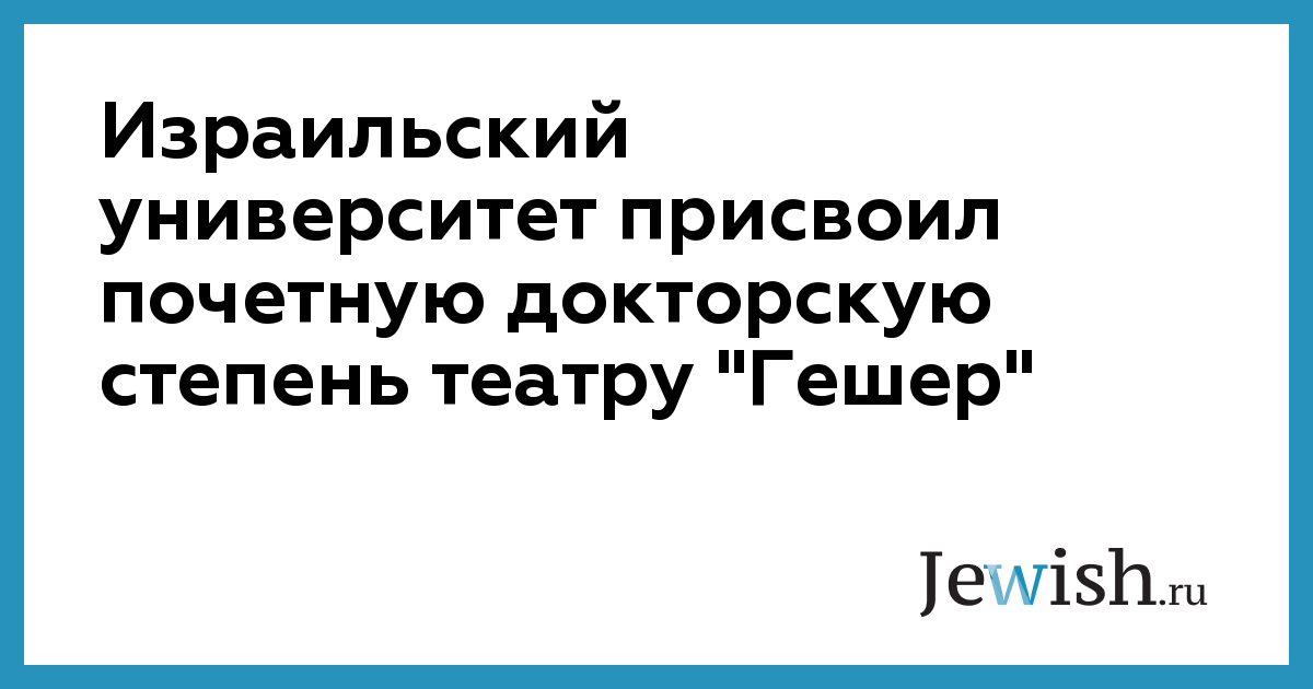 Израильский университет присвоил почетную докторскую степень театру "Гешер"