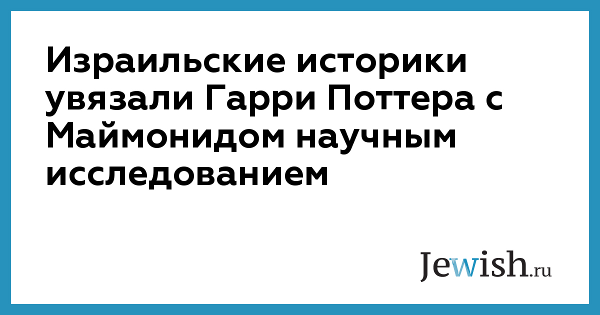 Хотя в религиозном еврейском обществе истории английской писательницы Джоан Роулинг о юном волшебнике Гарри Поттере не всегда считаются подходящим чтением, ими, тем не менее, зачитывались многие и многие еврейские дети. Да и израильские ученые убеждены: великий мудрец иудаизма и противник магии рабби Моше Бен Маймон (Рамбам) отнюдь не счел бы книгу о Гарри Поттере идолопоклонством, пишет в среду 17 мая Jerusalem Post.