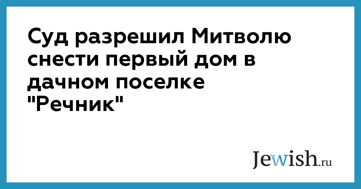 Суд разрешил Митволю снести первый дом в дачном поселке "Речник"