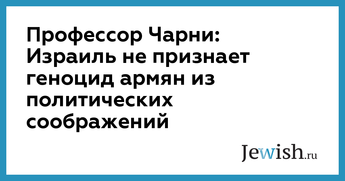 Правда, в прошлом году в Ереване был главный раввин Израиля Иона Мецгер, посетивший мемориал в Цицернакаберде и фактически признавший трагедию 1915 года геноцидом. Я считаю это прекрасным прецедентом. Главный раввин Израиля имеет большой вес, но он также не представляет правительство», — подчеркнул профессор Чарни.