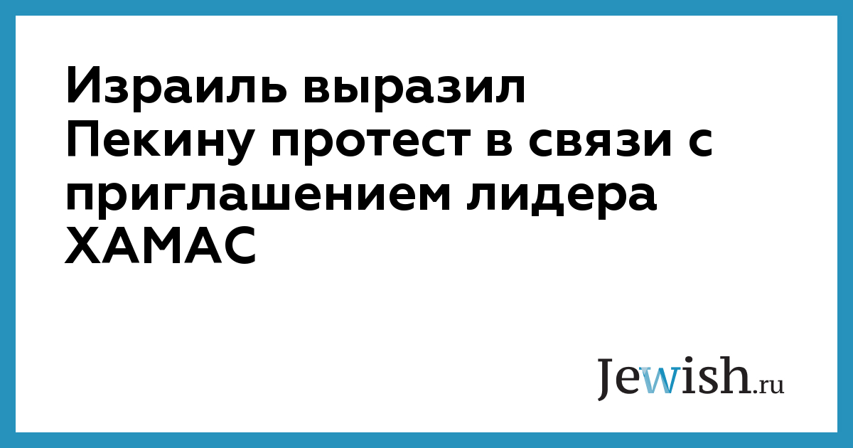 Израиль выразил Пекину протест в связи с приглашением лидера ХАМАС